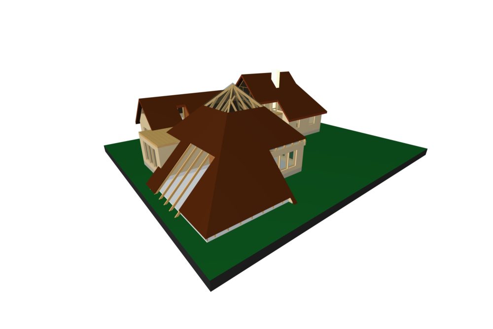 Pabeigts darbs pie dzīvojamās ēkas rekonstrukcijas būvprojekta izstrādes. Esošai ēkai projektēta piebūve, kurā paredzēts izvietot peldbaseinu, 2 bērnu istabas, viesistabu, WC bloku. Esošā arhitektoniskā situācija bija sarežģīta, tādēļ izvēlējāmies apvienot ēku jumtus, pagarinot esošās ēkas jumtu un izmantot piramidālo jumta formu, kā arī izveidot ekspluatējamu jumtiņu piebūves un esošās ēkas savienojošā posmā. Rezultātā izdevās harmonizēt un līdzsvarot jauno un veco ēkas apjomu.